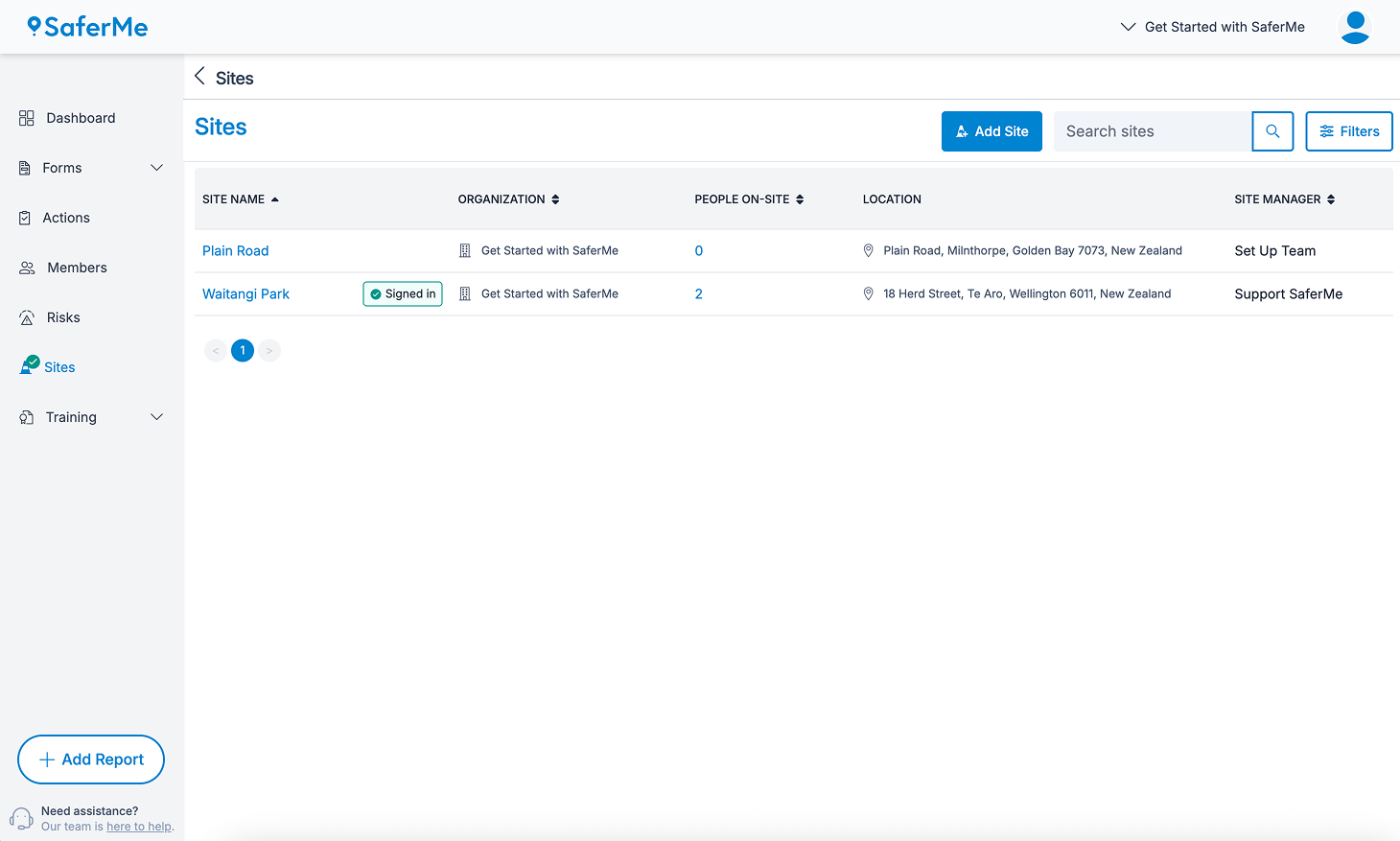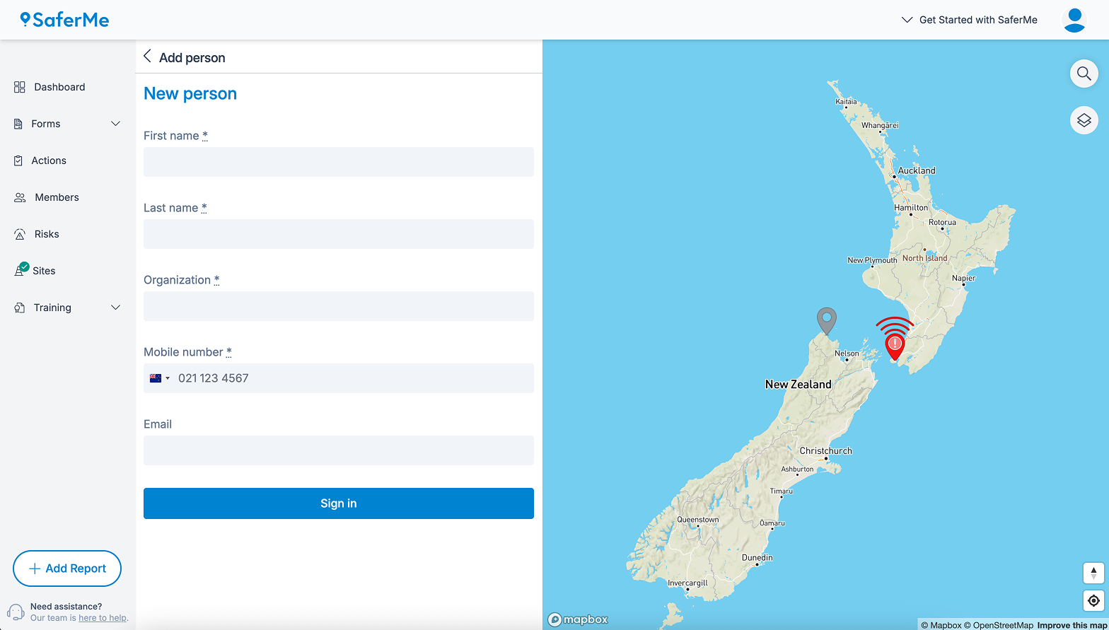To access the Sites page, Admins or Managers of the organisation must begin in the SaferMe web app.