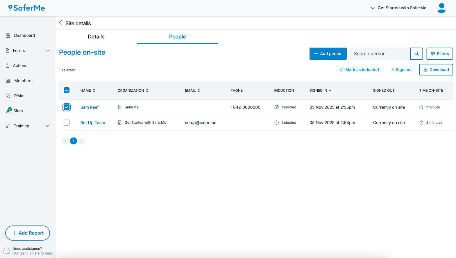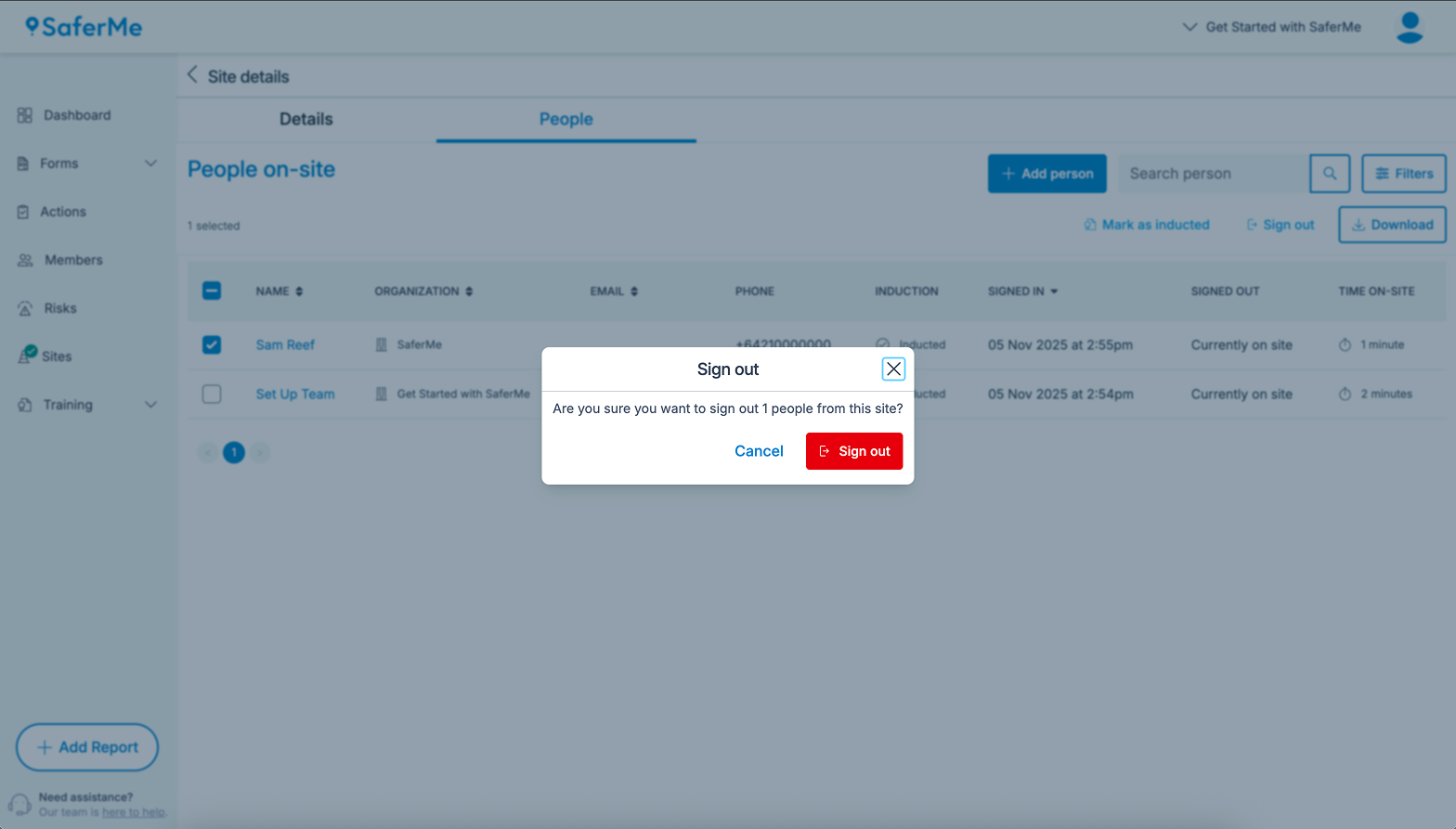 If a worker does not have a mobile device to sign into a site via the app or QR code, the Site Manager, Admins or Managers of the organisation can sign the person in on their behalf.