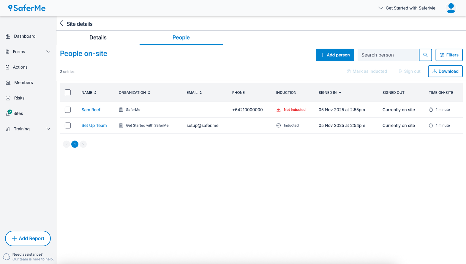 2. On the Site Details page, select the People on site > Not Inducted tag.